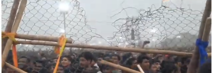 पुलिस बेरिकेट्स को छोड़कर कुछ फेंस वाच टावर पर भी चढ़ गए। अंत में भीड़ को नियंत्रित करने के लिए पुलिस को लाठियां चटकानी पड़ी। पुलिस के काफी मशक्कत के बाद भीड़ को नियंत्रित किया जा सका।