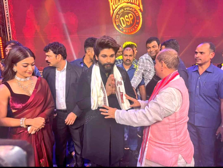 जब कार्यक्रम को संबोधित करने के लिए जब अल्लू अर्जुन आए तो सर्वप्रथम फेंस का अभिवादन स्वीकार किया और अपनी कमजोर हिन्दी के लिए बिहार वासियों से क्षमा मांगी और 6 दिसंबर से सिनेमा घरों में पहुंच कर फिल्म देखने का अनुरोध किया।