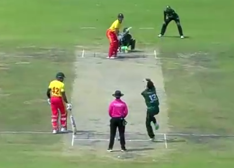 के बीच जारी तीन टी-20 मैचों के सीरीज के दूसरे मैच में आज जिम्बाब्वे ने टास जीतकर पहले बल्लेबाजी करने का निर्णय लिया। लेकिन पाकिस्तान के 25 वर्षीय स्पिनर सुफियान मुकीम के जबरदस्त गेंदबाजी के सामने जिम्बाब्वे की पूरी टीम मात्र 54 रनों के कुल योग पर धाराशाई हो गई।